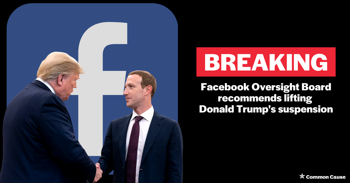 The Facebook Oversight Board has recommended that Facebook lift its suspension of former President Trump’s account -- inviting him to once again spread harmful disinformation and hate speech on a platform that has repeatedly failed to hold him to any standard.