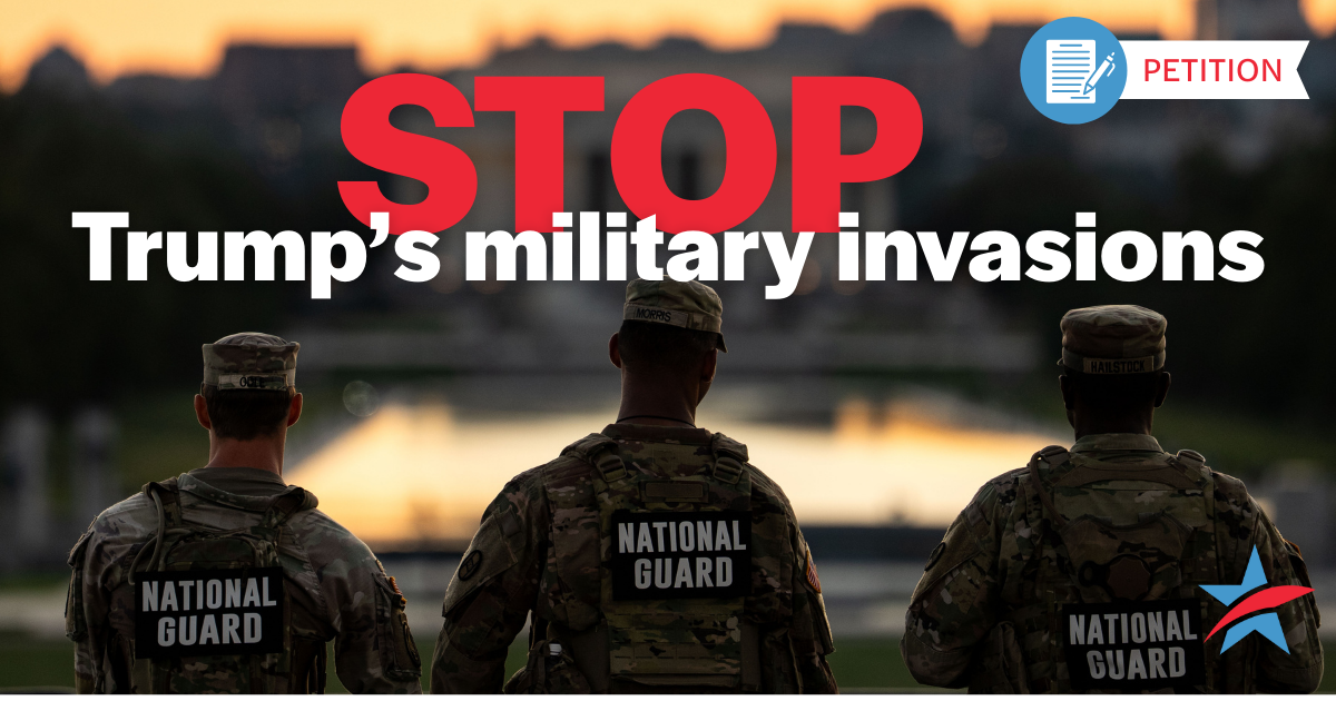 Members of Congress must stop Trump’s authoritarian military invasions of our cities before it’s too late. He's threatening to occupy cities across the country – violating residents’ rights, militarizing our communities, and threatening his political opponents to fall in line.