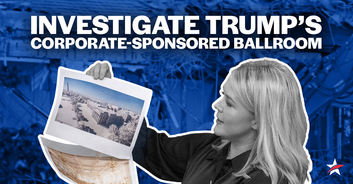 Congress must investigate Trump’s corporate-sponsored $300 million ballroom. The public deserves to know the full truth about the massive companies behind it and the influence they’re trying to buy in the Trump Administration.